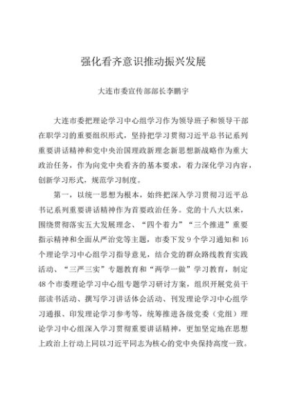 / 党组学习:20240730(经验交流)强化看齐意识推动振兴发展——大连市委宣传部