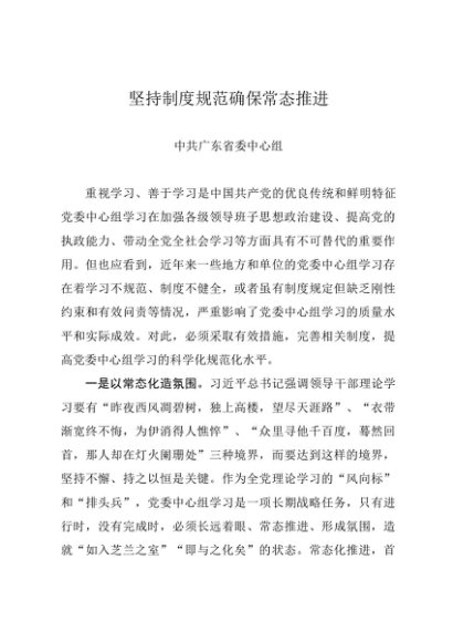 党组学习:20240730(经验交流)坚持制度规范确保常态推进——中共广东省委中心组