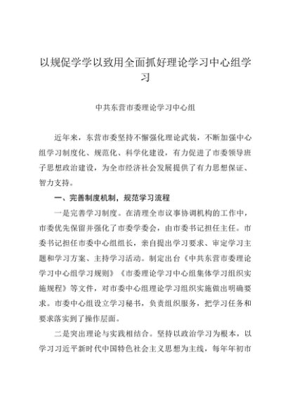 / 党组学习:20240730(经验交流)以规促学学以致用全面抓好理论学习中心组学习——中共东营市委理论学习中心组