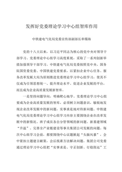 / 党组学习:20240730(经验交流)发挥好党委理论学习中心组智库作用——中铁建电气化局党委宣传部