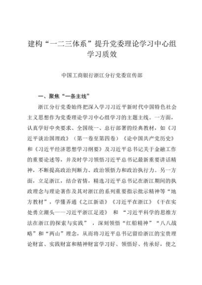 / 党组学习:20240730(经验交流)建构“一二三体系”提升党委理论学习中心组学习质效——中国工商银行浙江分行党委