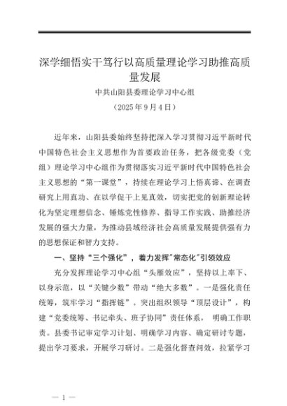 党组学习:20250904深学细悟实干笃行以高质量理论学习助推高质量发展——中共山阳县委理论学习中心组