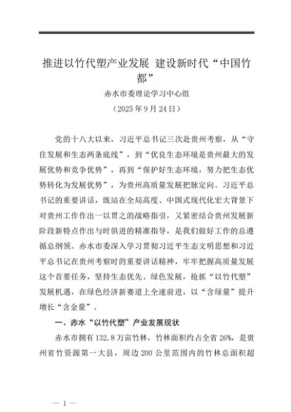 党组学习:20250924推进以竹代塑产业发展 建设新时代“中国竹都”——赤水市委理论学习中心组
