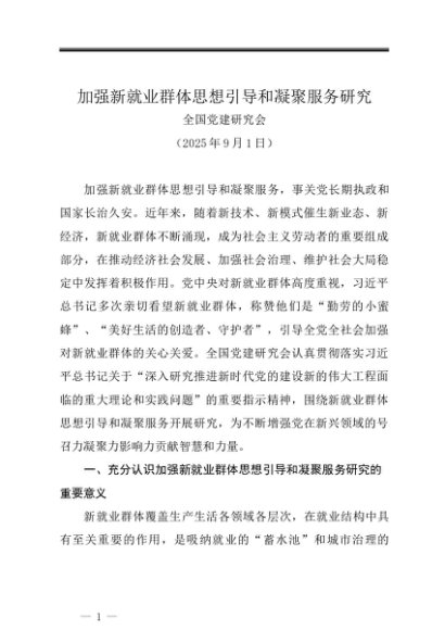 党组学习:20250901加强新就业群体思想引导和凝聚服务研究——全国党建研究会