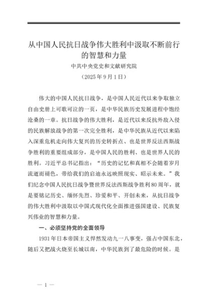 党组学习:20250901从中国人民抗日战争伟大胜利中汲取不断前行的智慧和力量——中共中央党史和文献研究院