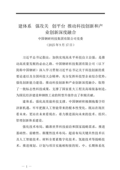 / 党组学习:20250917推动科技创新和产业创新深度融合——中国钢研科技集团有限公司党委