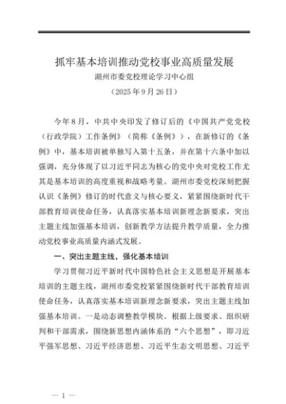 党组学习:20250926抓牢基本培训推动党校事业高质量发展——湖州市委党校理论学习中心组