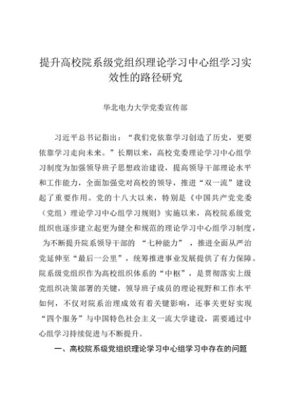 / 党组学习:20240730(理论研究)提升高校院系级党组织理论学习中心组学习实效性的路径研究——华北电力大学党委