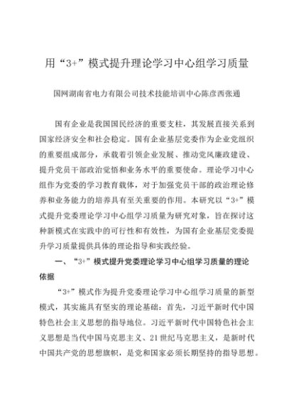 党组学习:20240730(理论研究)用“3+”模式提升理论学习中心组学习质量研究与探索——国网湖南省电力有限公司