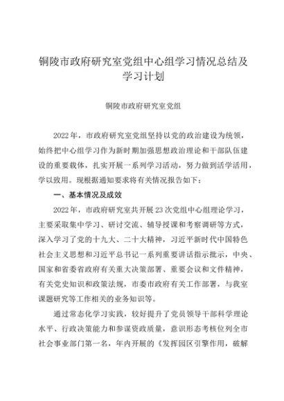 / 党组学习:20240730(工作总结)铜陵市政府研究室党组中心组学习情况总结及学习计划