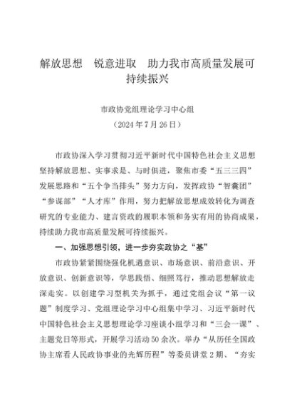 / 党组学习:20240726解放思想 锐意进取 助力我市高质量发展可持续振兴——市政协党组理论学习中心组