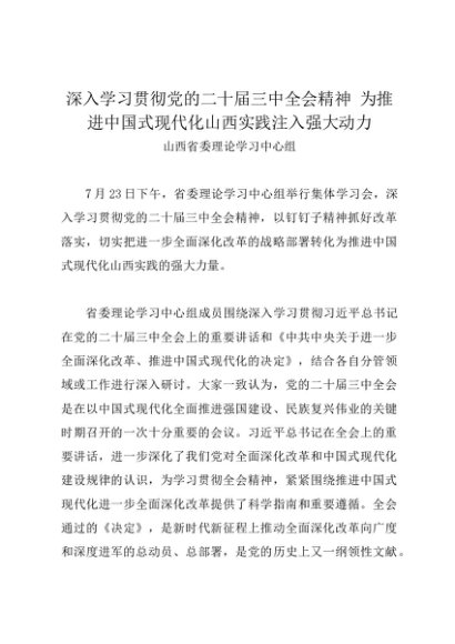 党组学习:20240723深入学习贯彻党的二十届三中全会精神 为推进中国式现代化山西实践注入强大动力——山西省委理论学习中心组