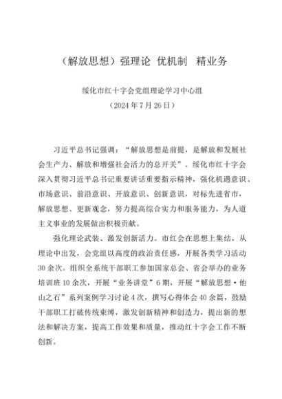 党组学习:20240726(解放思想)强理论 优机制 精业务——绥化市红十字会党组理论学习中心组