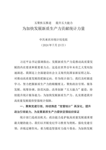 / 党组学习:20240723为加快发展新质生产力贡献统计力量——来宾市统计局党组