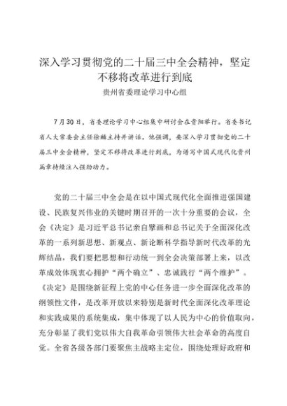 / 党组学习:20240730深入学习贯彻党的二十届三中全会精神,坚定不移将改革进行到底——贵州省委理论学习中心组