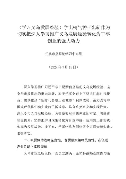 党组学习:20240715(学习义乌发展经验)学出精气神干出新作为切实把深入学习推广义乌发展经验转化为干事创业的强大动力——兰溪市委理论学习中心组