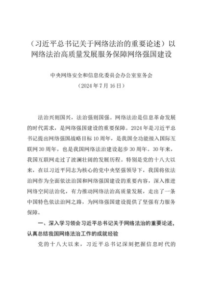 党组学习:20240716(习近平总书记关于网络法治的重要论述)以网络法治高质量发展服务保障网络强国建设——中央网络安全和信息化委员会办公室室务会