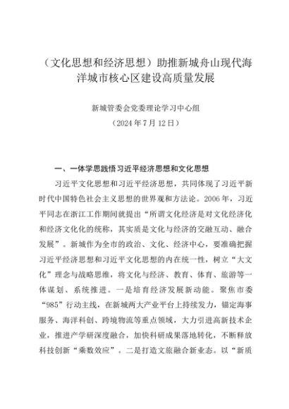 党组学习:20240712(文化思想和经济思想)助推新城舟山现代海洋城市核心区建设高质量发展——新城管委会党委理论学习中心组