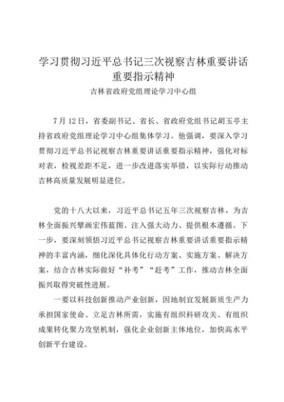 / 党组学习:20240712学习贯彻习近平总书记三次视察吉林重要讲话重要指示精神——吉林省政府党组理论学习中心组