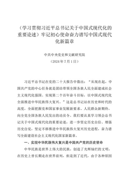 党组学习:20240701(学习贯彻习近平总书记关于中国式现代化的重要论述)牢记初心使命奋力谱写中国式现代化新篇章——中央党史和文献研究院