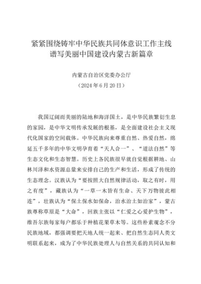 / 党组学习:20240620紧紧围绕铸牢中华民族共同体意识工作主线 谱写美丽中国建设内蒙古新篇章——内蒙古自治区党委办公厅