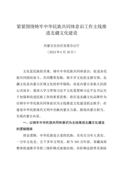 党组学习:20240618紧紧围绕铸牢中华民族共同体意识工作主线推进北疆文化建设——内蒙古自治区党委办公厅