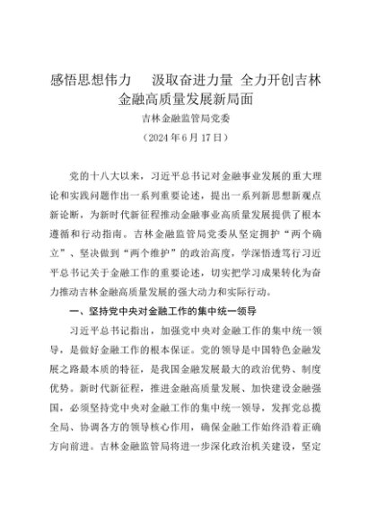 / 党组学习:20240617感悟思想伟力 汲取奋进力量 全力开创吉林金融高质量发展新局面——吉林金融监管局党委