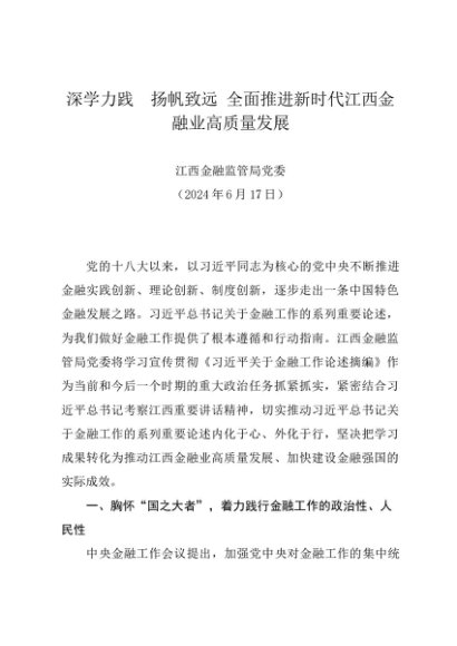 / 党组学习:20240617深学力践 扬帆致远 全面推进新时代江西金融业高质量发展——江西金融监管局党委
