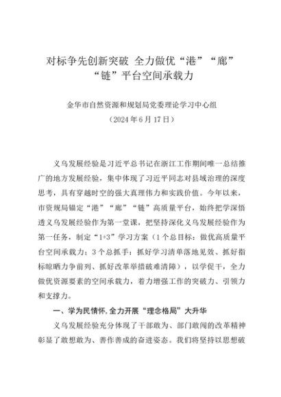 党组学习:20240617(义乌发展经验)对标争先创新突破 全力做优“港”“廊”“链”平台空间承载力——金华市自然资源和规划局党委理论学习中心组