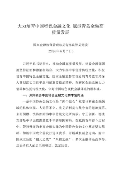 / 党组学习:20240607大力培育中国特色金融文化 赋能青岛金融高质量发展——国家金融监督管理总局青岛监管局党委
