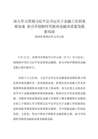 党组学习:20240613深入学习贯彻习近平总书记关于金融工作的重要论述 奋力开创新时代陕西金融高质量发展新局面——陕西省委理论学习中心组
