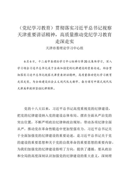 党组学习:20240606(党纪学习教育)贯彻落实习近平总书记视察天津重要讲话精神,高质量推动党纪学习教育走深走实——天津市委理论学习中心组