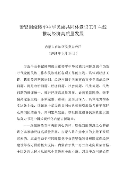 / 党组学习:20240614紧紧围绕铸牢中华民族共同体意识工作主线 推动经济高质量发展——内蒙古自治区党委办公厅