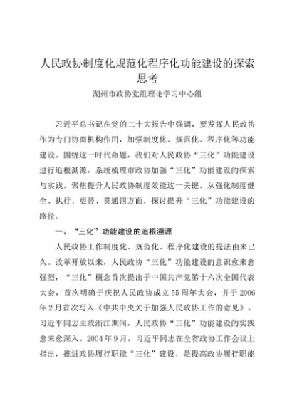 党组学习:20240530(人民政协三化功能建设)人民政协制度化规范化程序化功能建设的探索思考——湖州市政协党组理论学习中心组