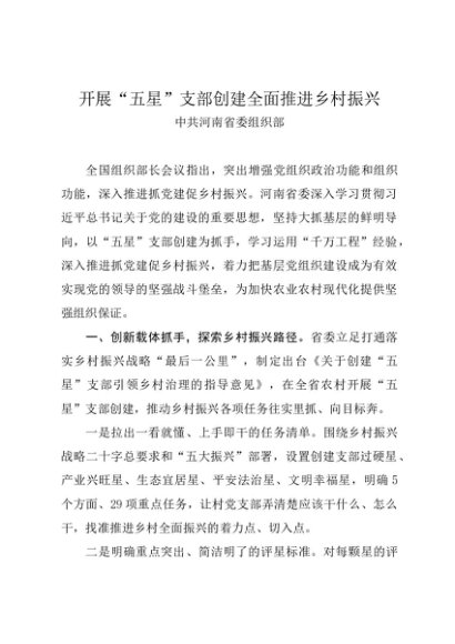 / 党组学习:20240530开展“五星”支部创建全面推进乡村振兴——河南省委组织部