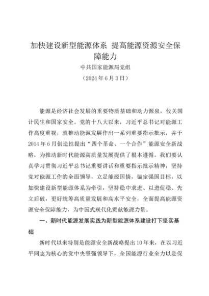 / 党组学习:20240603加快建设新型能源体系 提高能源资源安全保障能力——中共国家能源局党组
