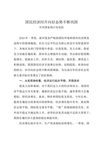 党组学习:20240530国民经济回升向好态势不断巩固——国家统计局党组