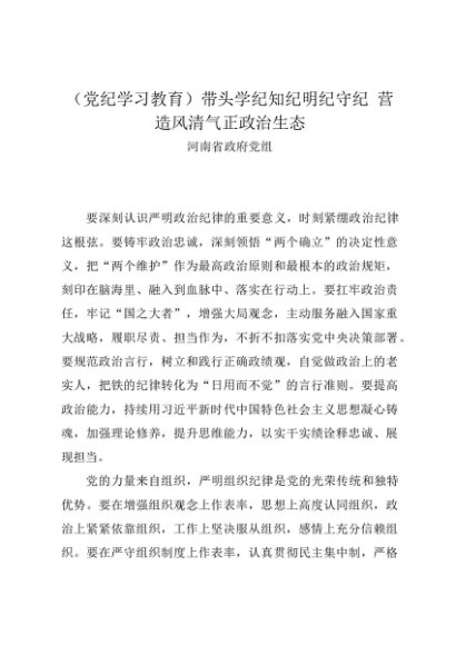 / 党组学习:20240528(党纪学习教育)带头学纪知纪明纪守纪 营造风清气正政治生态——河南省政府党组