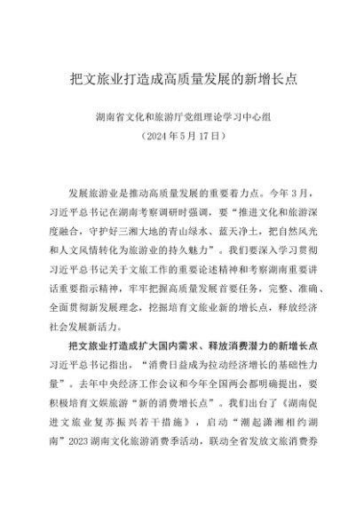 / 党组学习:20240517把文旅业打造成高质量发展的新增长点——湖南省文化和旅游厅党组理论学习中心组
