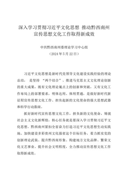 党组学习:20240522深入学习贯彻习近平文化思想 推动黔西南州宣传思想文化工作取得新成效——中共黔西南州委理论学习中心组