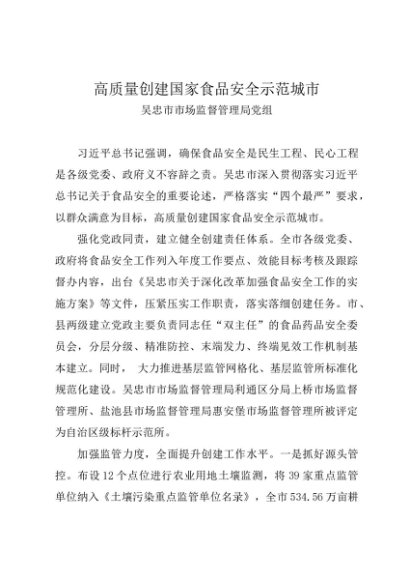 党组学习:20240330高质量创建国家食品安全示范城市——吴忠市市场监督管理局党组