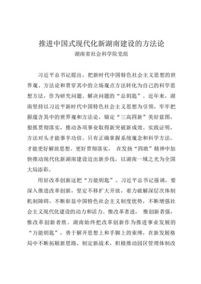 / 党组学习:20240330推进中国式现代化新湖南建设的方法论——湖南省社会科学院党组
