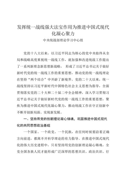 党组学习:20240330(习近平总书记关于做好新时代党的统一战线工作的重要思想)发挥统一战线强大法宝作用为推进中国式现代化凝心聚力——中央统战部理论学习中心组