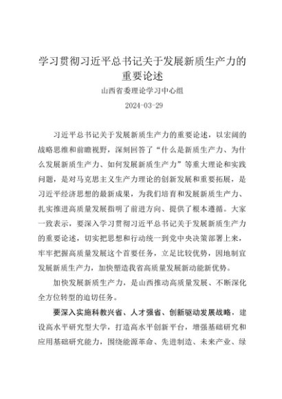 / 党组学习:20240329学习贯彻习近平总书记关于发展新质生产力的重要论述——山西省委理论学习中心组