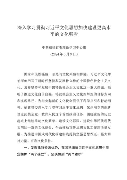 / 党组学习:20240509深入学习贯彻习近平文化思想加快建设更高水平的文化强省——福建省委理论学习中心组