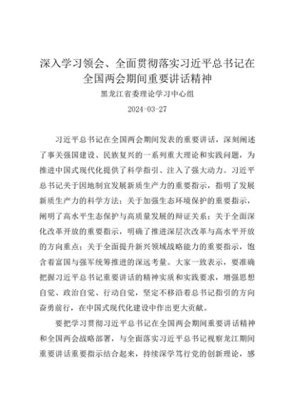 / 党组学习:20240327深入学习领会、全面贯彻落实习近平总书记在全国两会期间重要讲话精神——黑龙江省委理论学习中心组