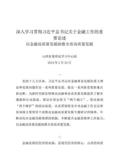 / 党组学习:20240229(关于金融工作的重要论述)以金融高质量发展助推全省高质量发展——山西省委理论学习中心组