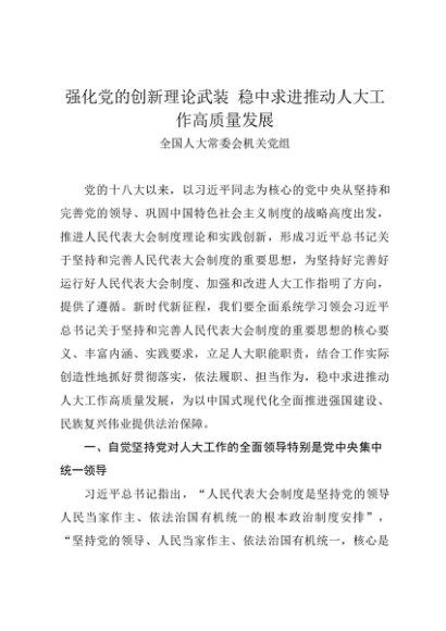 党组学习:20240217强化党的创新理论武装 稳中求进推动人大工作高质量发展——全国人大常委会机关党组