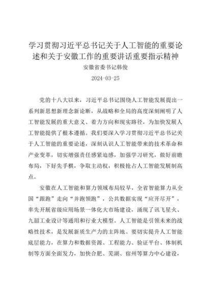 党组学习:20240325学习贯彻习近平总书记关于人工智能的重要论述和关于安徽工作的重要讲话重要指示精神——安徽省委理论学习中心组