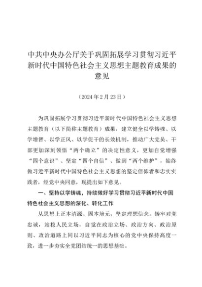 / 党组学习:20240223中共中央办公厅关于巩固拓展学习贯彻习近平新时代中国特色社会主义思想主题教育成果的意见